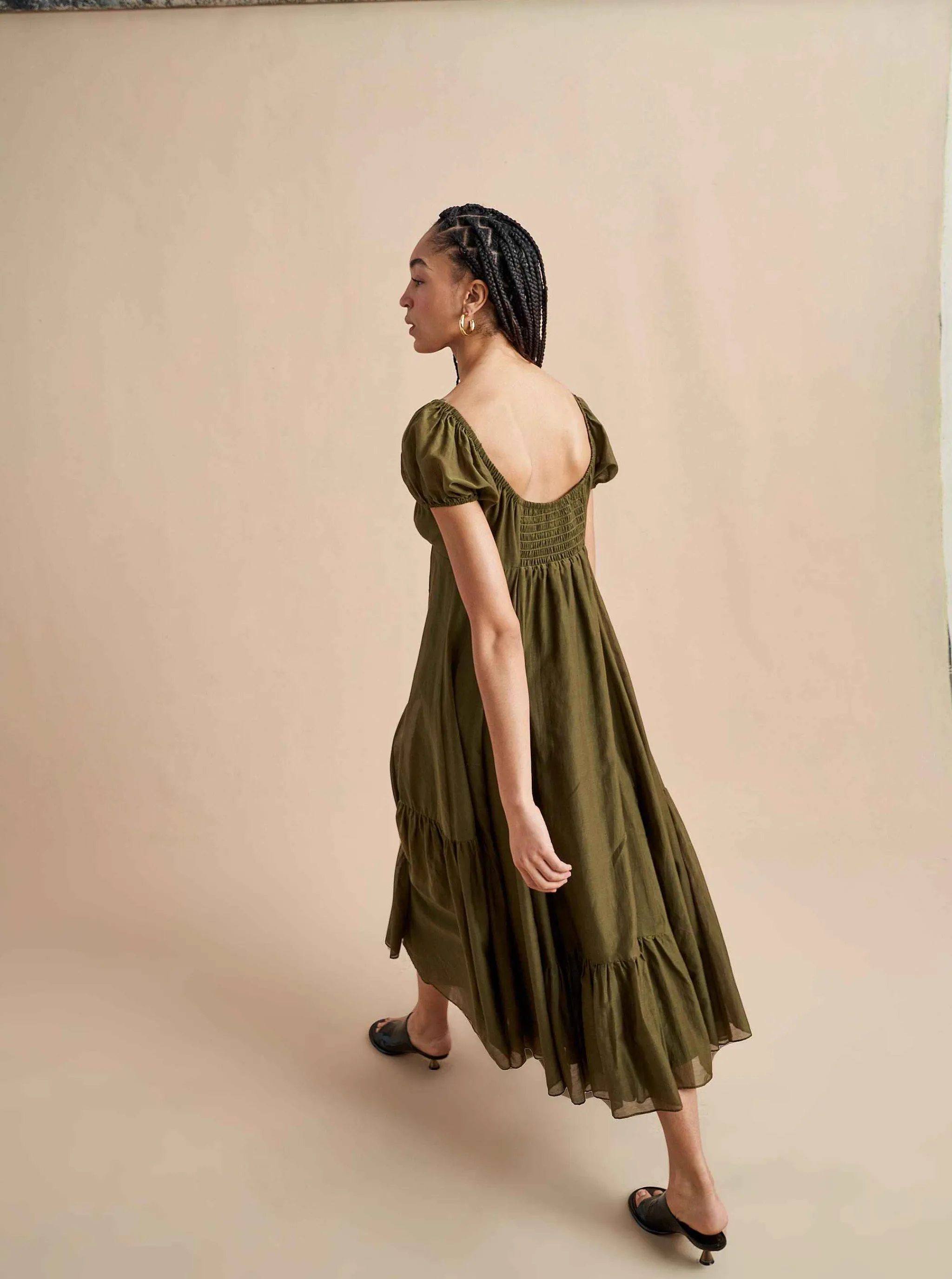 Romance Is Alive And Well In Our Josie Dress Featuring An Empire Waist, Covered Buttons, Puff Sleeves And An Elasticated Back To Make It An Easy Popover Style.