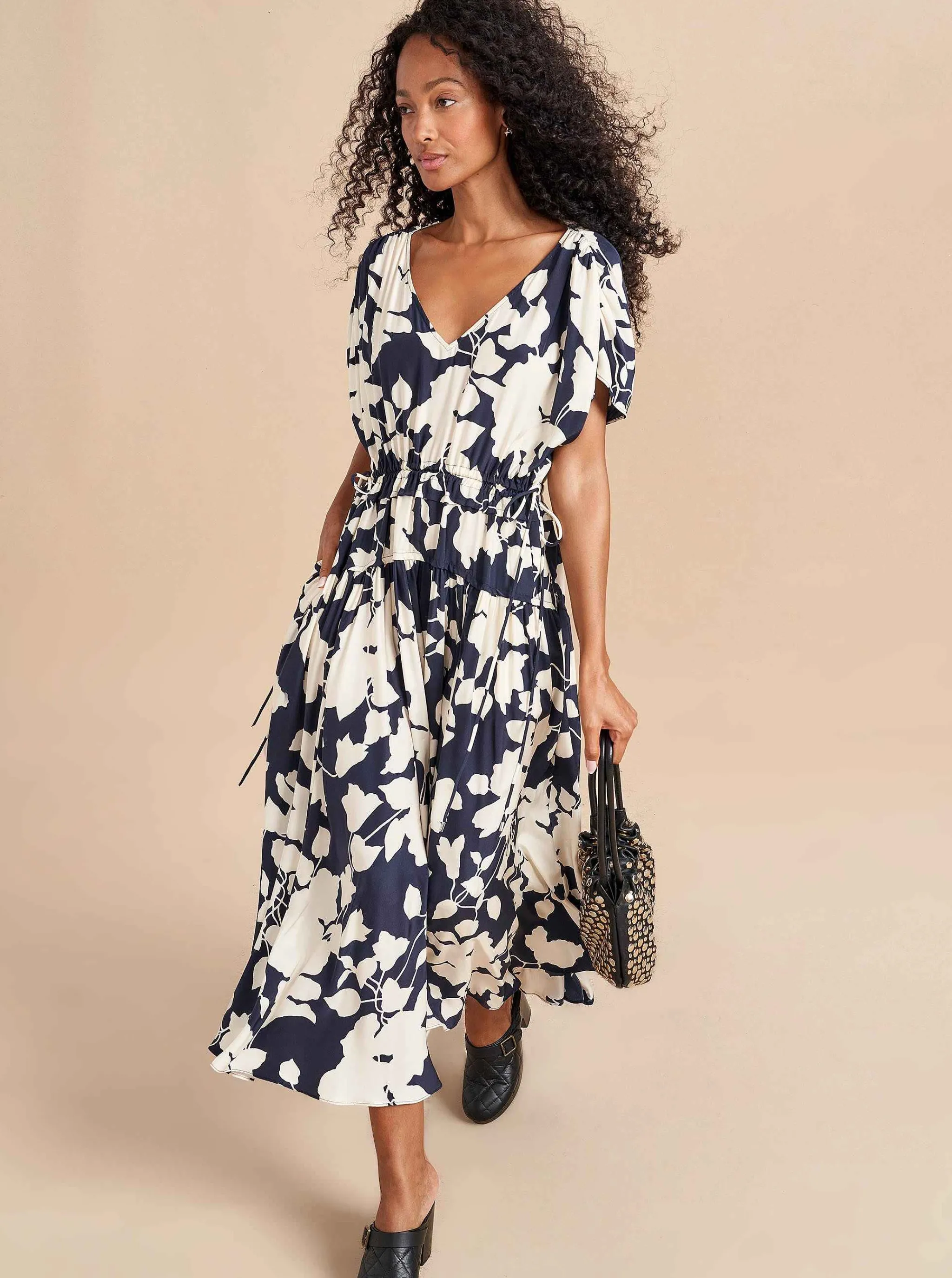 Not All Heroes Wear Capes, But You Can’T Mistake The Ones That Do. Enter The Natalie Dress With Its Delicately Shirred, Dolman Cape Sleeves That Drape Over The Shoulders Into A Flattering V-Neckline. An Accentuated Waist And Fluid Skirt In 100% Silk Round Out This Number That Is Here To Save The Day (And Night).