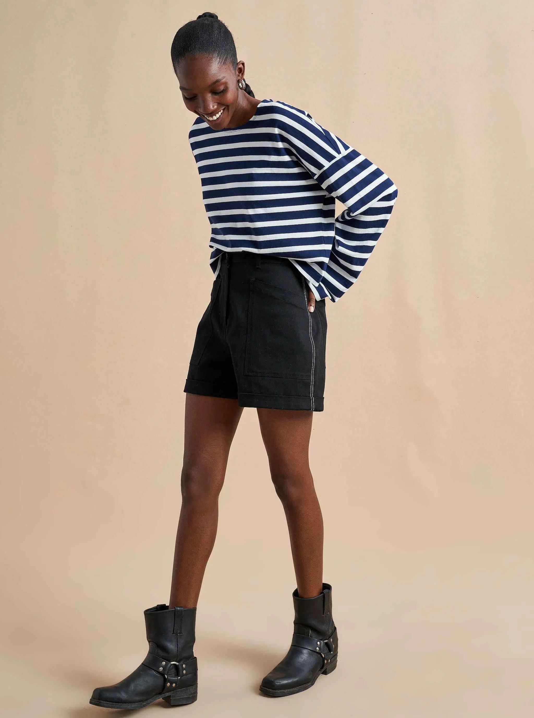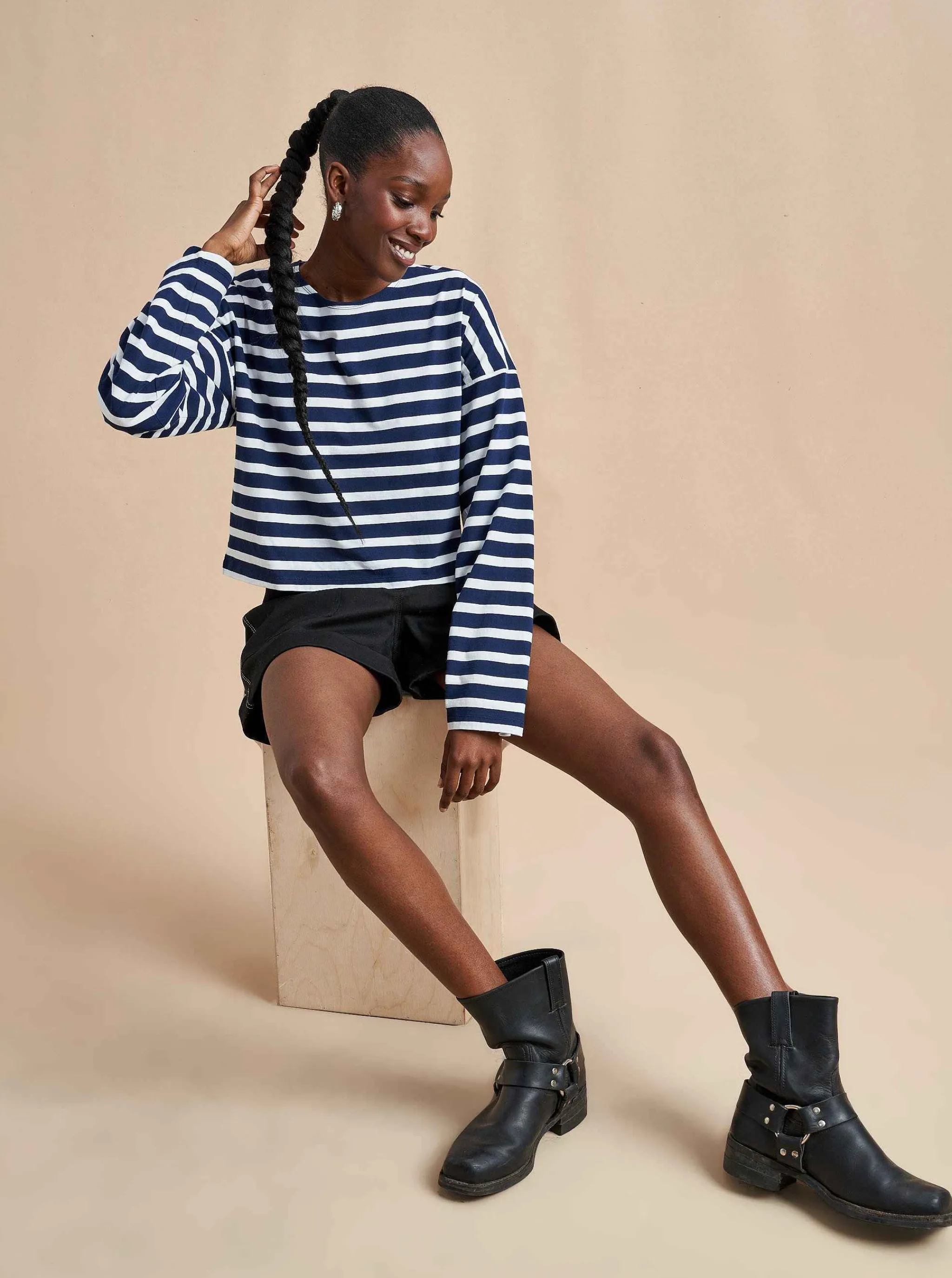 Our New Take On The Breton Tee, Inspired By The One And Only, Charlotte Gainsbourg. Cut From Our Signature Lean Lines Delicious Cotton, With A Roomier Fit, Cropped Body And Classic Drop Shoulder.