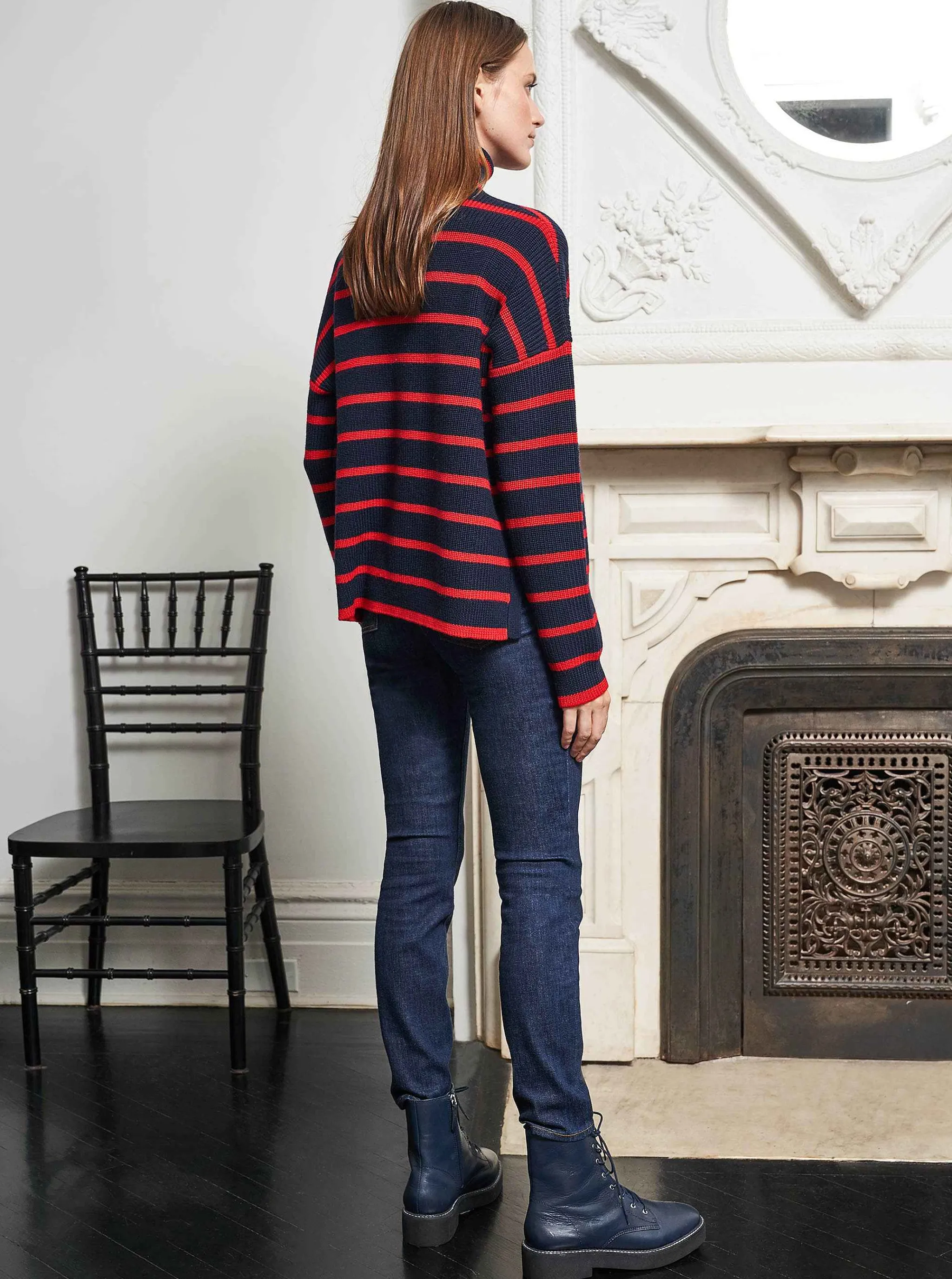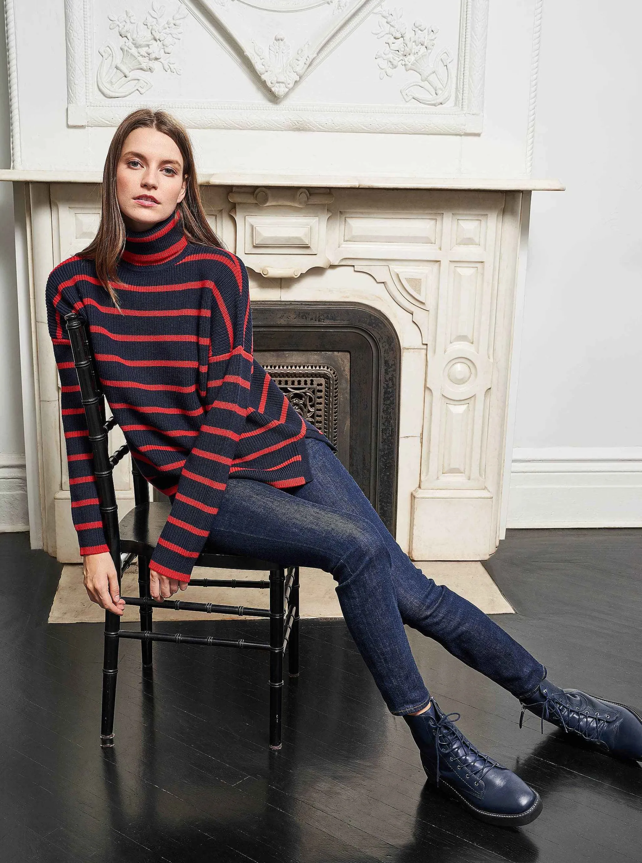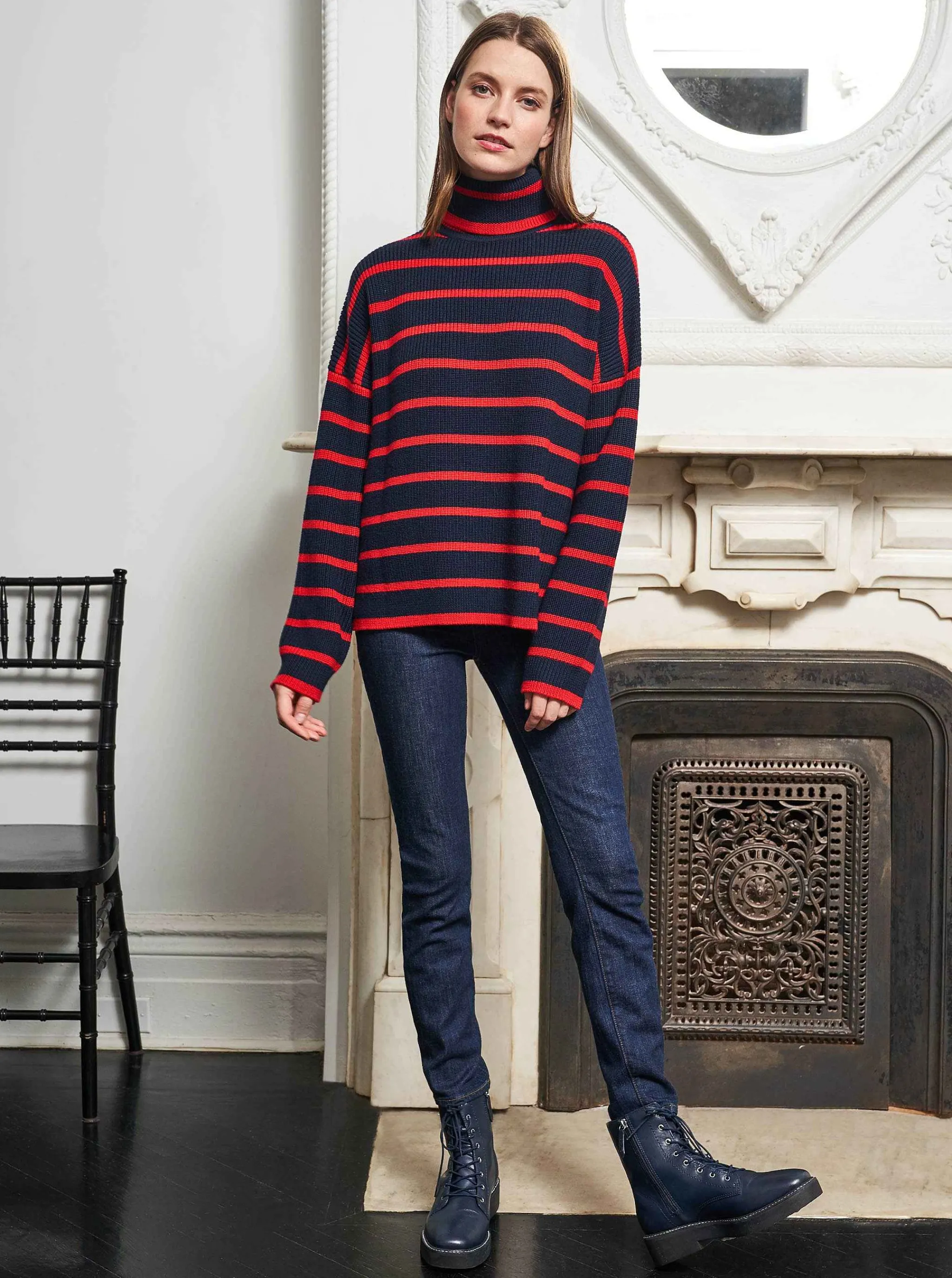 This Super Soft, Merino Wool, Stripy Turtleneck Is The Perfect Cover For Any Look. With Side Slits And A Roomy Body, It Looks Just As Good Over Blouses Or Your Favorite Tank So Layer Away.