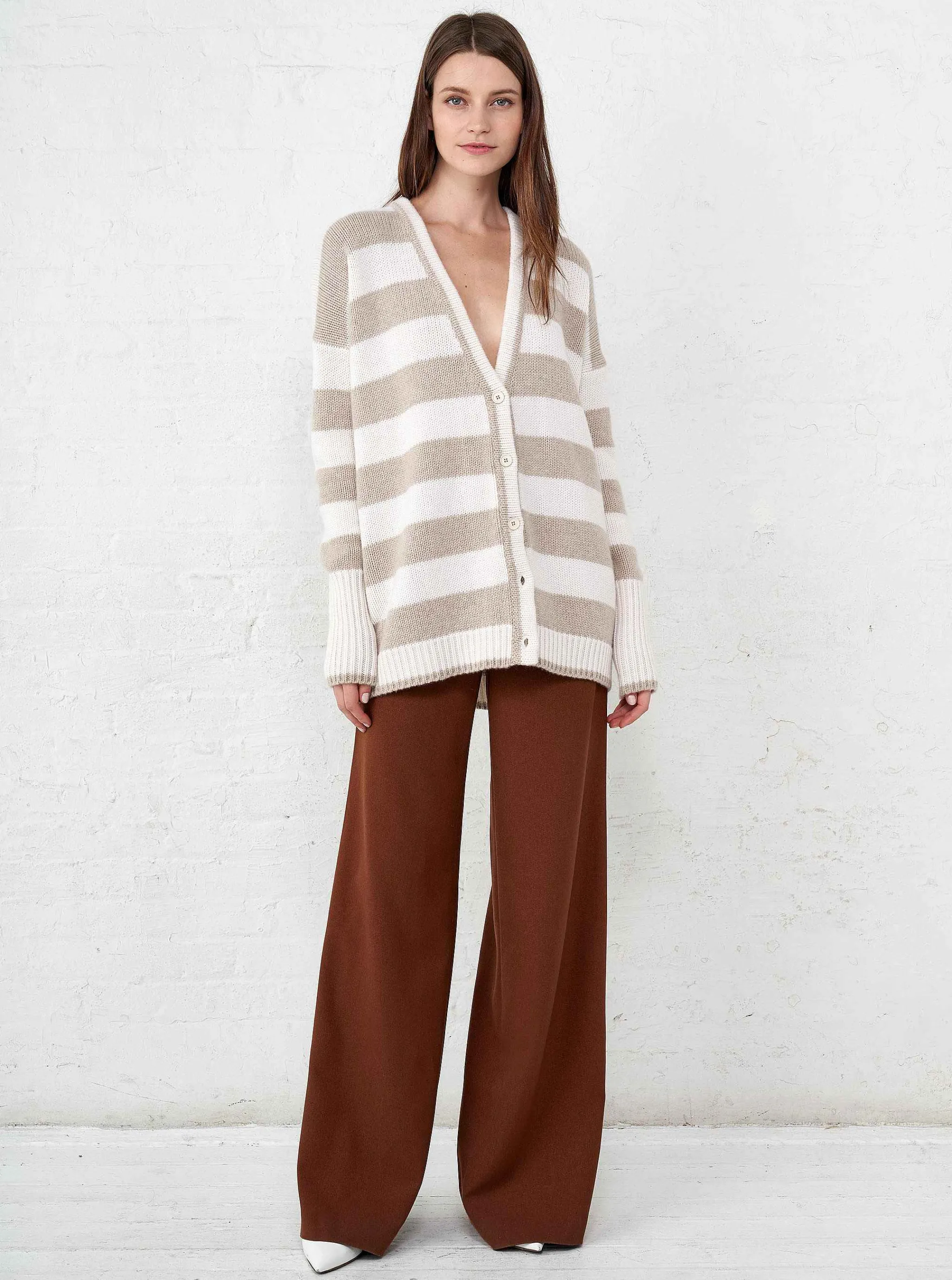 Inspired By La Ligne Muse And Model, Martha Hunt, This Chunky Wool Cashmere Cardigan Is The Perfect Piece To Curl Up By The Fire With Or Take Out On The Town. Super Soft In Cream And Beige Stripes, Channel Your Inner Martha With This New Wardrobe Staple.