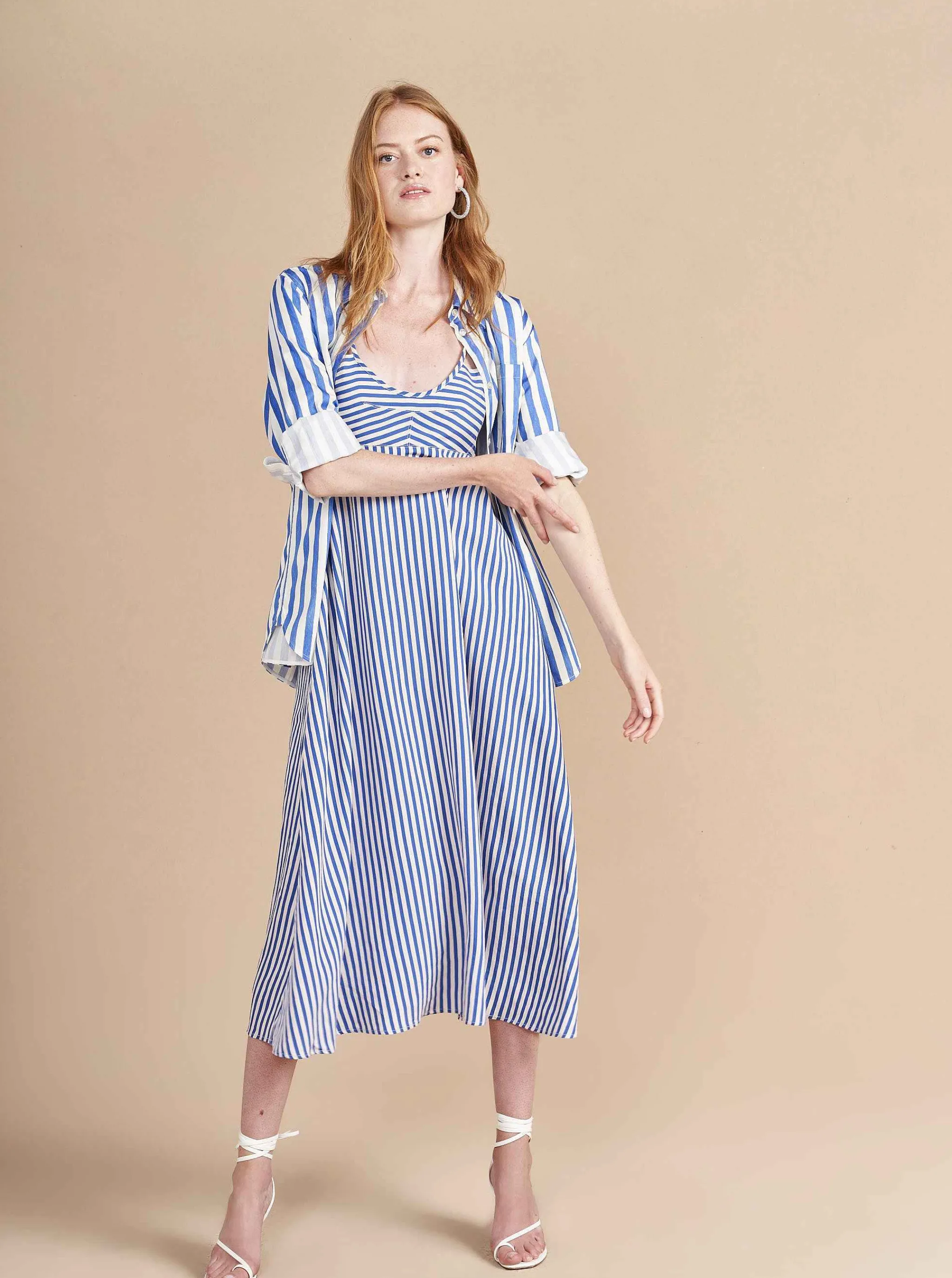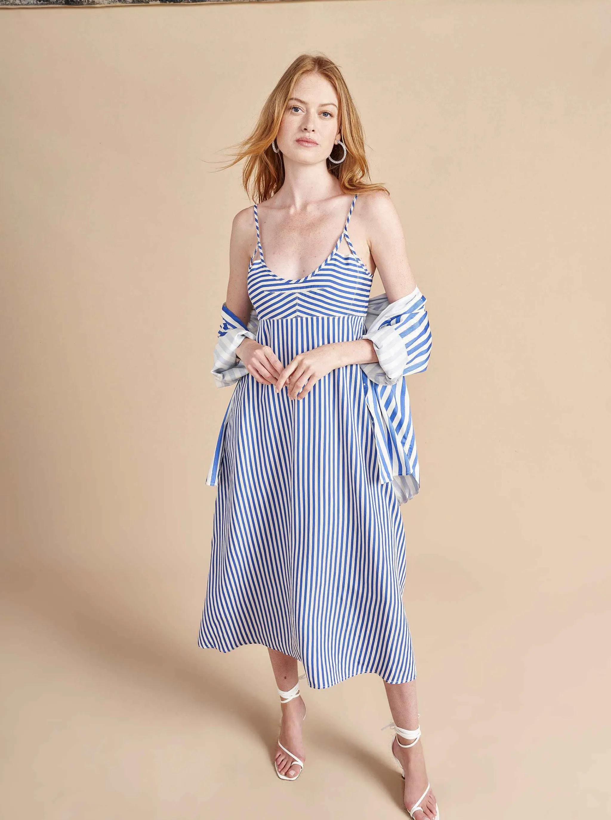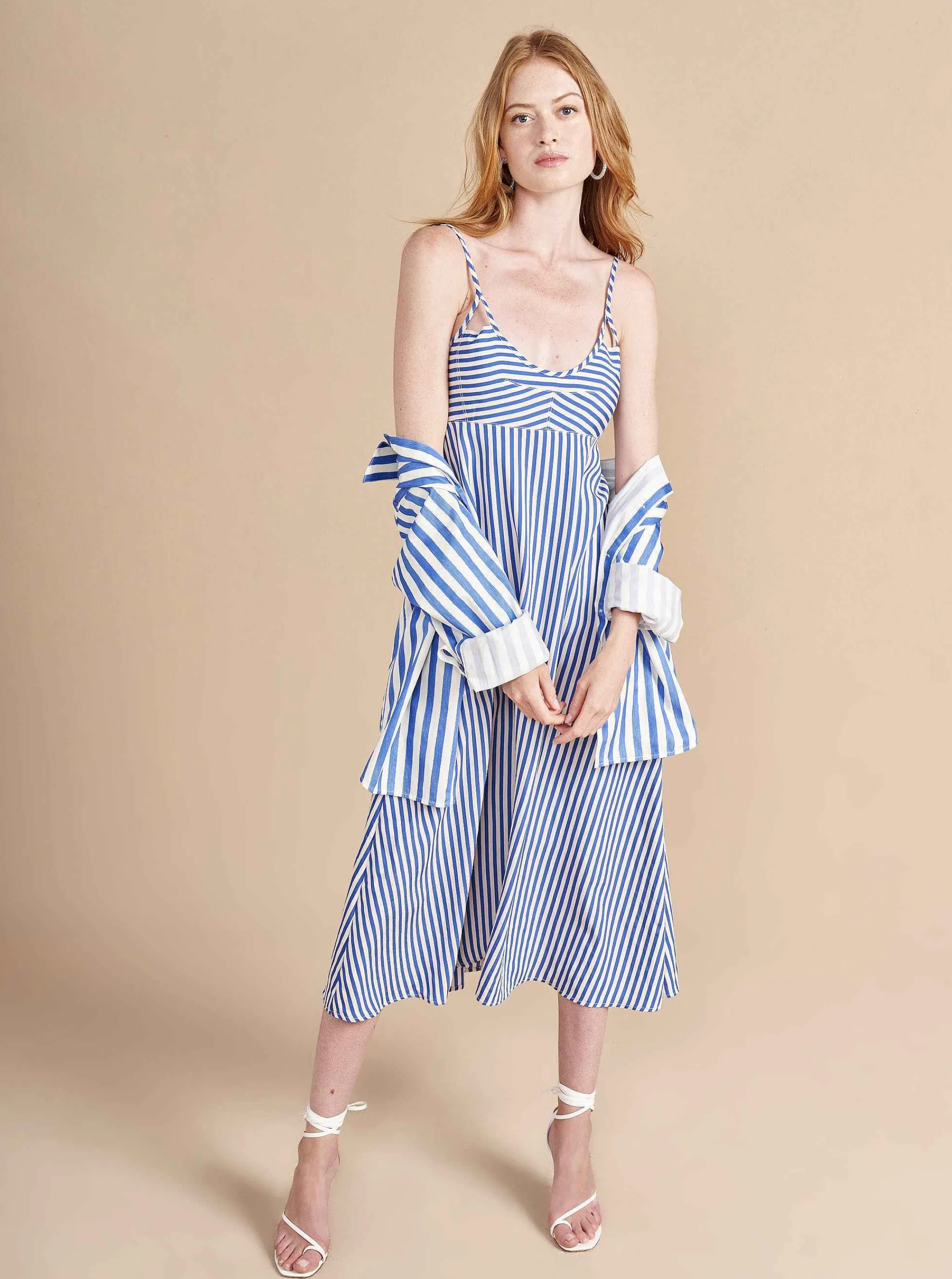 La Ligne Midi Dresses*Portia Dress White/Cobalt